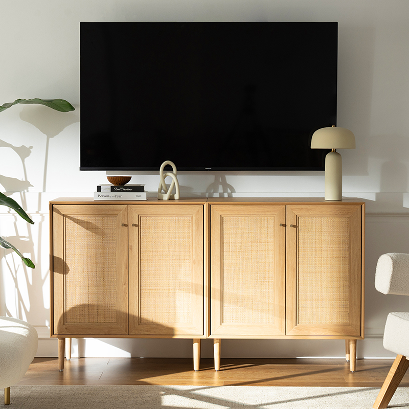 | উপাদান | MDF ফিনিস এবং বাস্তব বেতের ছাঁটা সঙ্গে কঠিন কাঠের বোর্ড |